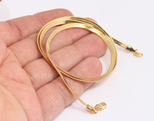 3mm 24k Shiny Gold Snake Necklace, Ready Flat Snake Necklace, BXB395-147
