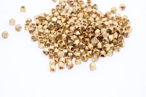3mm Brass Faceted Beads, Brass Diamond Beads, Cube KA36