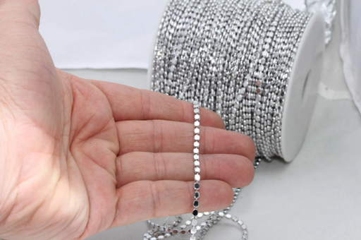 3mm Rhodium Plated Faceted Curb Chain, Soldered Chains, CHK638-1
