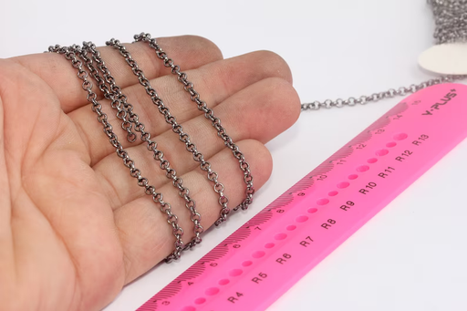 3mm Gunmetal Plated Rolo Chain, Soldered Chain, Bulk Lot BXB53