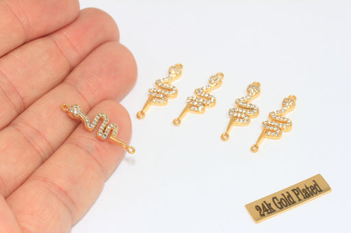 8x25mm 24k Shiny Gold Snake Charm, Two-Hole Snake Charm, Snake Bracelet Charm, Pave Snake Charms, CZ Beads, Gold Plated Findings, ZRCN297