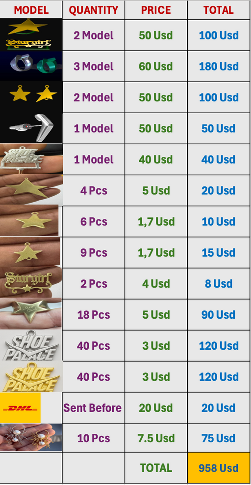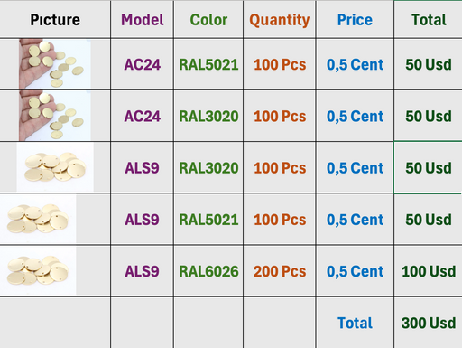 Mte380 500 Pcs = 55 Usdbrt409 40 Pcs = 20 Usdmls1152 200 Pcs = 20 Usdmls1032 20 Pcs = 64 UsdPLS50 80 Pcs = 60 UsdMGN7. 80 Pcs = 180 Usd Total Amou...