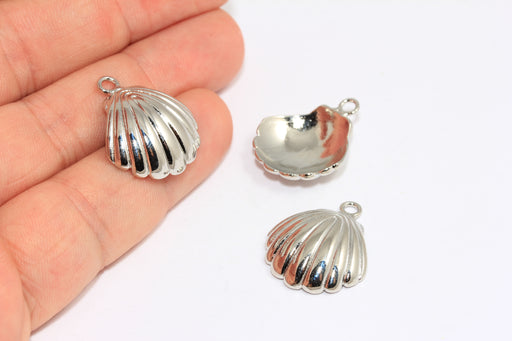 17x21mm Rhodium Plated Sea Shell Charm, Seashell Beads, Seashell Pendant, BRT413