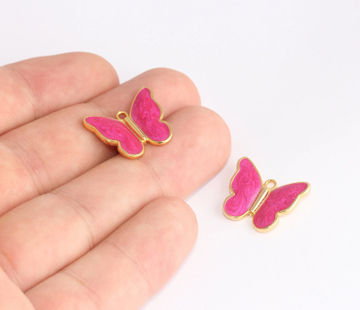 17x20mm 24k Shiny Gold Butterfly Charms, Pendant, Pink SLM701