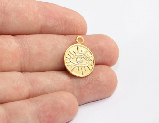 17x21mm 24k Shiny Gold Evil Eye, Bracelet Charms, Evil Eye MLS630