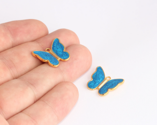 17x20mm 24k Shiny Gold Butterfly Charms, Necklace Blue SLM699