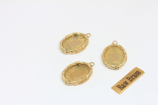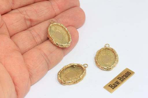 17x24mm Raw Brass Oval Bezel Frame Coin Charms, Cabochon Settings, FNL74