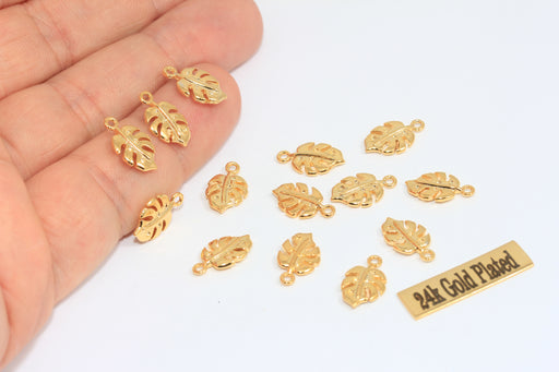 8x14mm 24k Shiny Gold Leaf Charms, Leaf Pendant, Gold MLS333