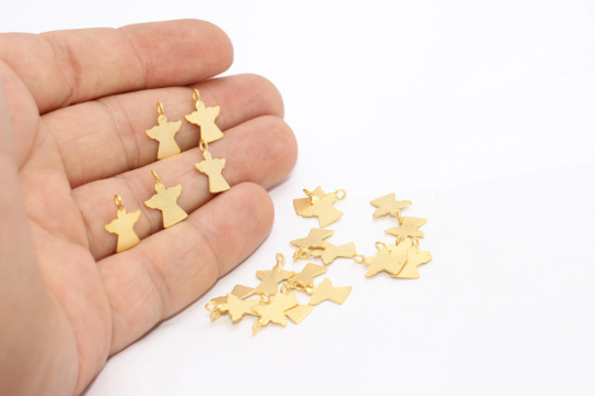10x13mm 24k Matt Gold Angel Charm, Tiny Angel Charm, BRT255