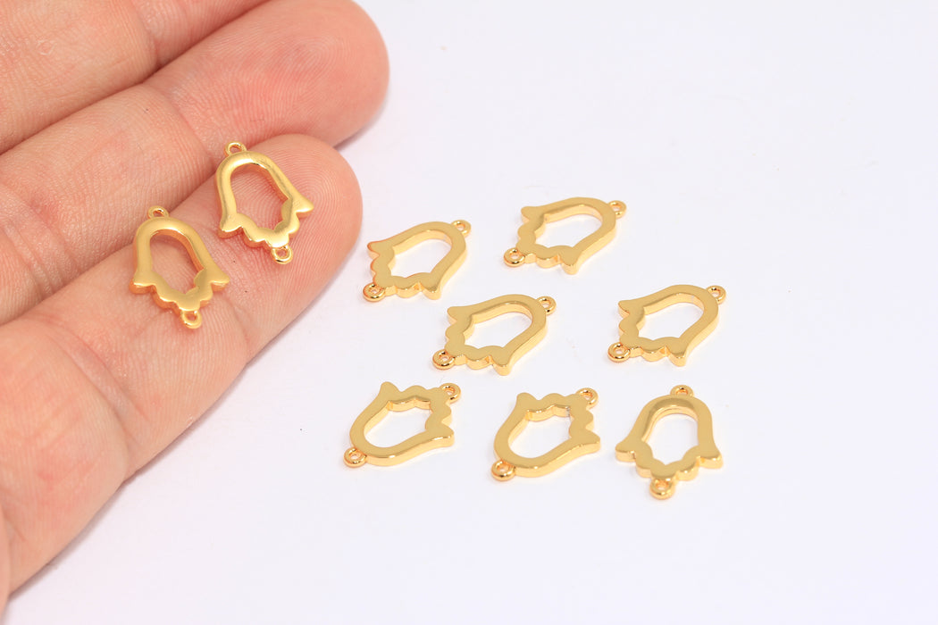 10x14mm 24k Shiny Gold Hamsa Charms, Two Hole Fatima Hand Beads, BRT767