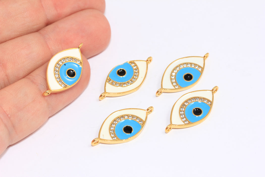 12x21mm 24k Shiny Gold CZ Evil Eye, CZ Enamel Evil Eye Charms, Micro Pave Evil Eye Bracelet Connector, MLS114