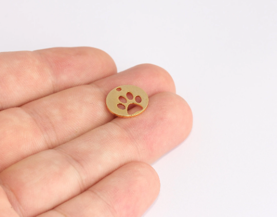 14mm 24k Shiny Gold Coins, Gold Paw Necklace For Pet SLM763