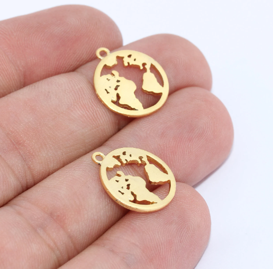 15x16mm 24k Matt Gold World Map Pendant, Globe Pendant, BRT193