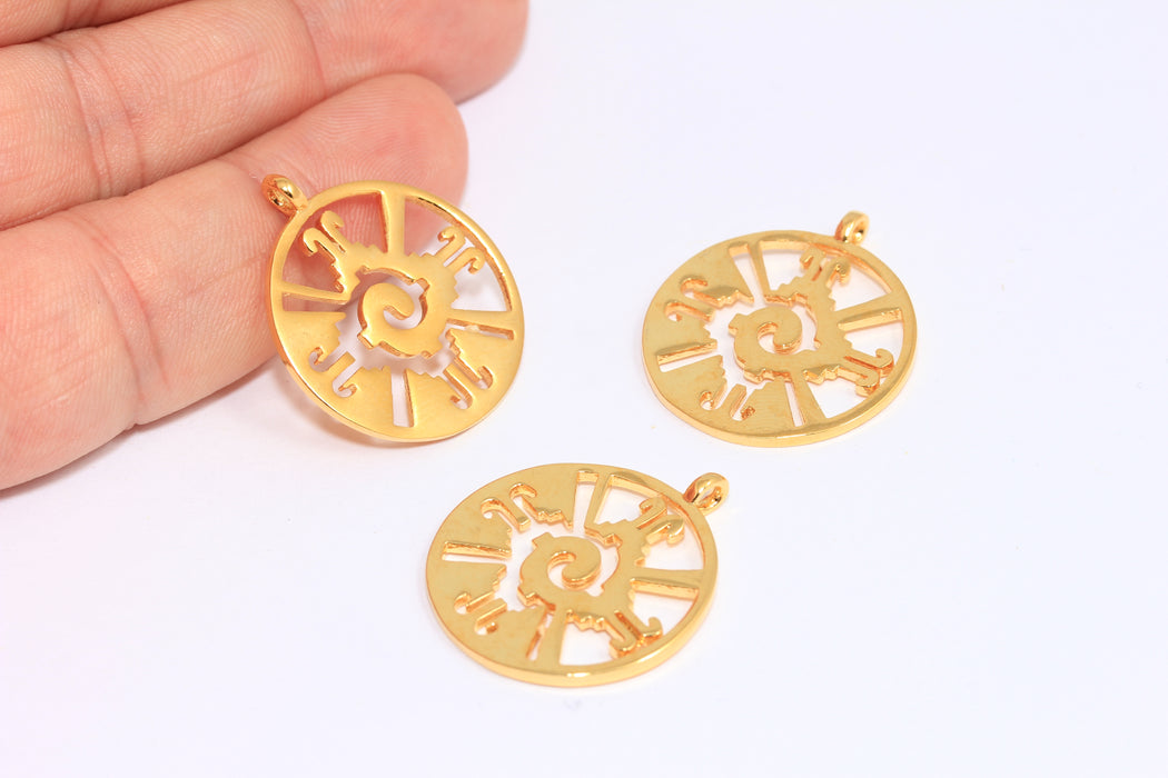 24mm 24k Shiny Gold Hunab Ku Charms, Hunab Ku Pendant, BRT348