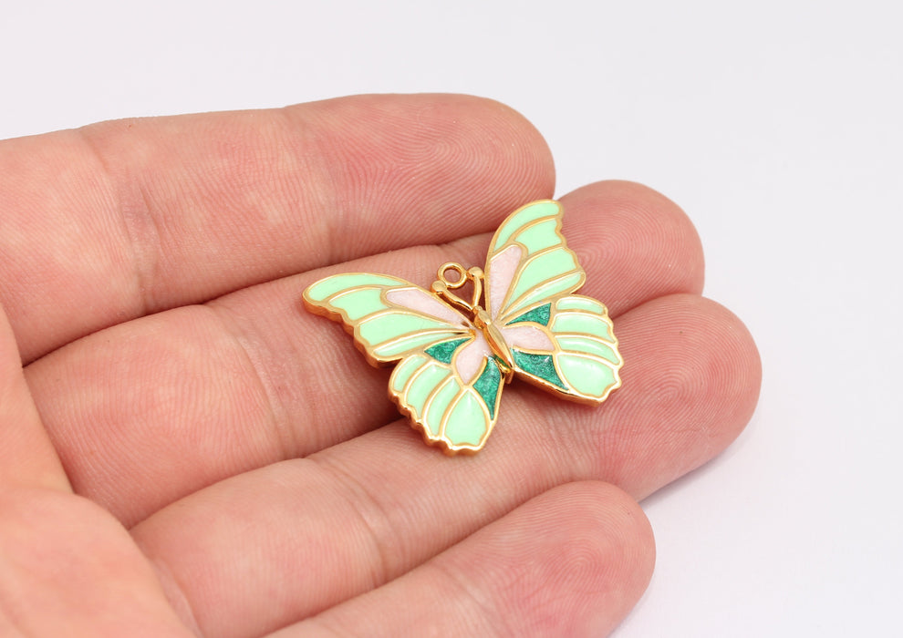 25x31mm 24k Shiny Gold Butterfly Charms, Mint Green Enamel Butterfly, KDR2-5