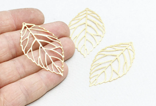 30x52mm 24k Shiny Gold Leaf Pendant, Gold Leaf Charms, CHK215-1