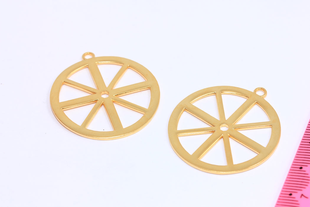 33x37mm 24k Matt Gold Wheel Pendant, Wagon Wheel Charms, Vintage Wagon Wheel, BRT177