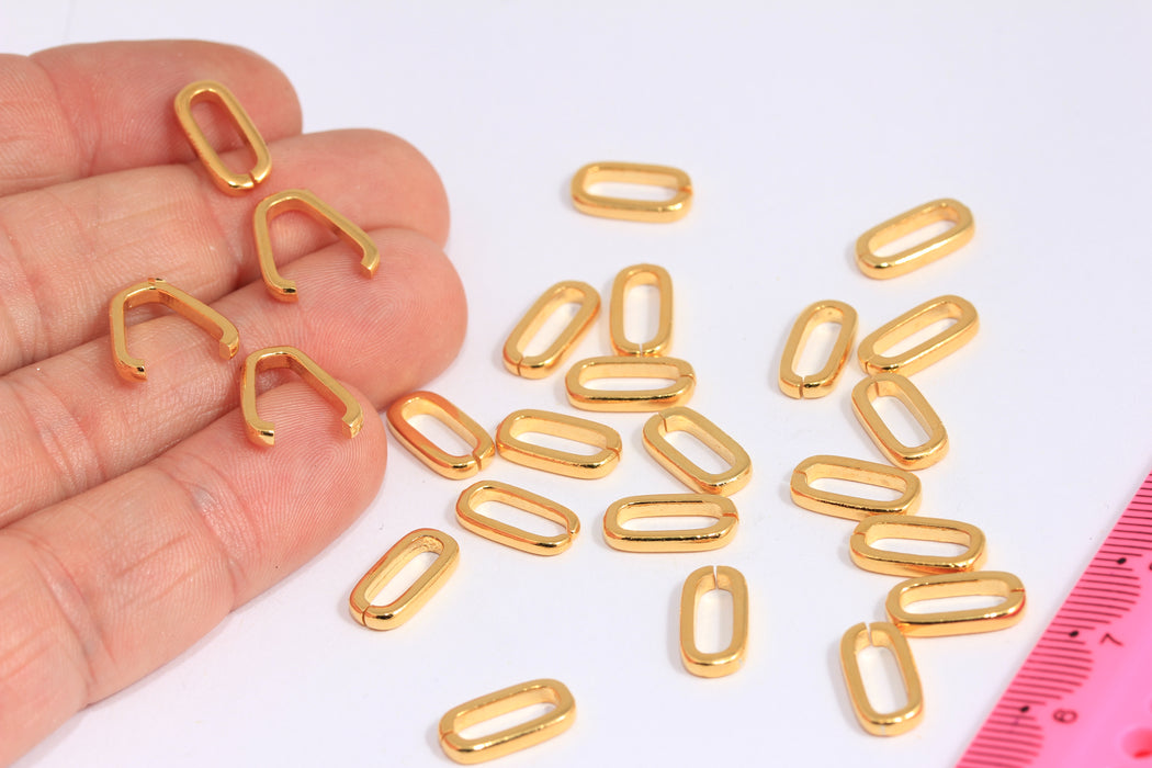 7x13mm 24k Shiny Gold Oval Ring, Connector, Open Rings, Oval Jump Rings, Gold Crimps, Oval Connectors, Gold Plated Findings, ROSE45