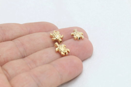 8x12mm 24k Shiny Gold Tortoise Charm, Gold Turtle, BRT807