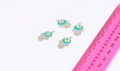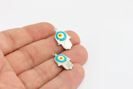 17x19mm Silver Plated Hamsa Charms, Evil eye hamsa, MTE445