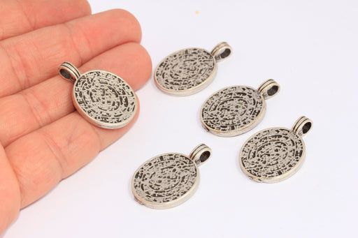 15x21mm Antique Silver Medallion Charm, Coins, Silver MTE1223