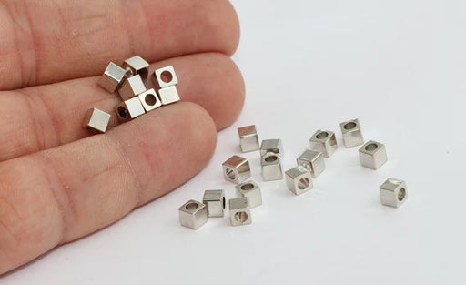 4mm Rhodium Plated Cube Beads, Spacer Beads, Cubes, MTE470
