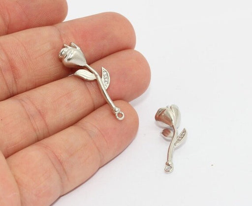 10x32mm Silver Plated Tulip Pendant, Rose, Necklace , MTE1205