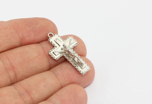 18x30mm Rhodium Plated Cross Charm, Cross Jewelry, MTE789