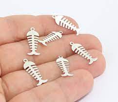 7x20mm Rhodium Plated Fishbone, Bone Charms, Brass MTE474
