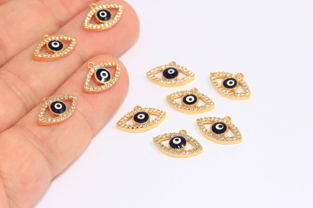 7x15mm 24k Shiny Gold Evil Eye Charm, Micro Pave Evil Eye Pendant, CZ Evil Eye Beads, ZRCN777