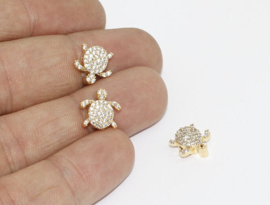 11mm 24k Shiny Gold Charms, Tortoise Charm, Micro Pave ZRCN135