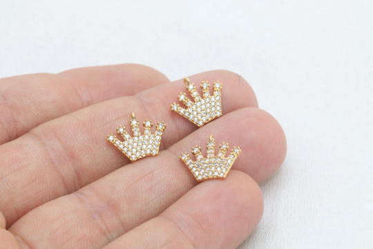 12x13mm 24k Shiny Gold Crown Charms, Micro Pave ZRCN575