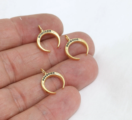 13x15mm 24k Shiny Gold Horn Pendant, Micro Pave, Gold ZRCN539