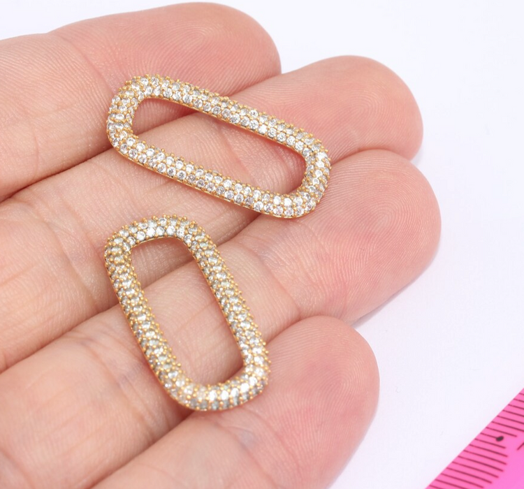 14x28mm 24k Shiny Gold Oval Chain Links, Cz Necklace Links, MLS646