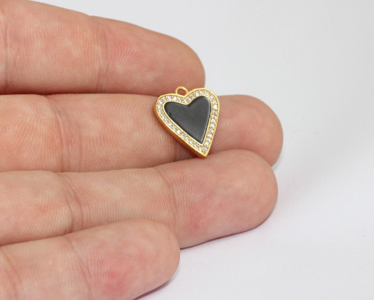 15x18mm 24k Shiny Gold Heart Charms, Micro Pave Heart, MLS551
