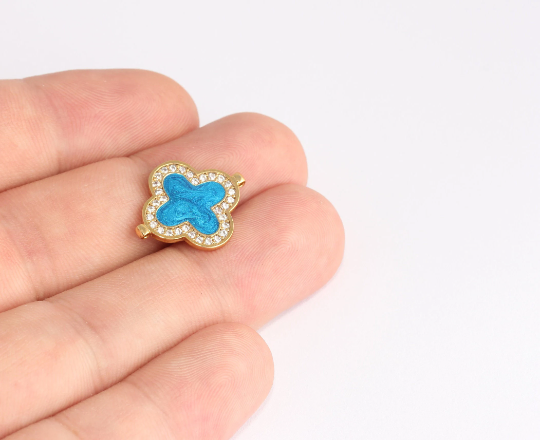 16x20mm 24k Shiny Gold Clover Charms, Blue Enamel ,CZ SLM704