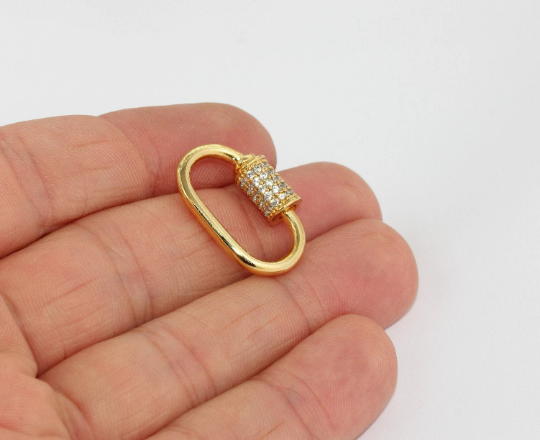 16x24mm 24k Shiny Gold Oval Screw Clasp, Cz Oval Screw BRT820