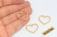 22mm 24k Shiny Gold CZ Heart Charm, Baguette Stone Heart, SLM30