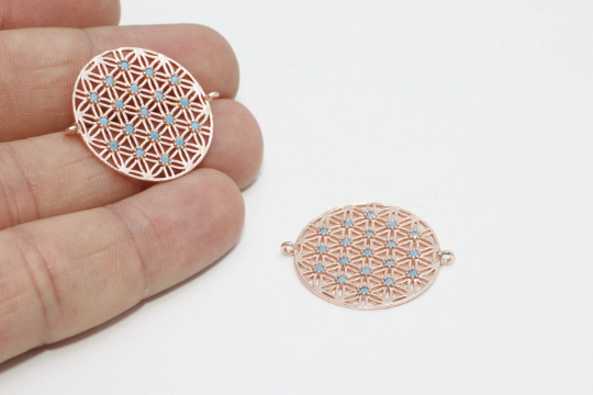 25mm Rose Gold Charms, Turquoise Stone Charm, Flower , ZRCN336