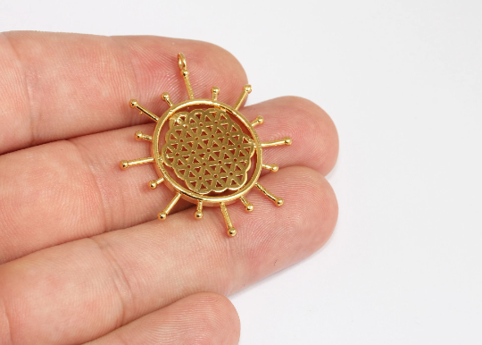 35x39mm 24k Shiny Gold Medallion, Micro Pave Flower, MLS858
