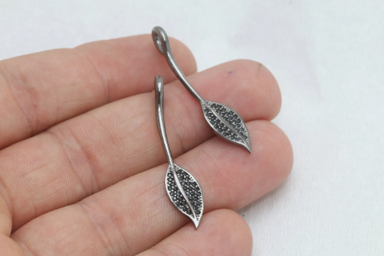 4x34mm Gunmetal Plated Leaf Pendant, CZ Olive Branch, ZRCN601