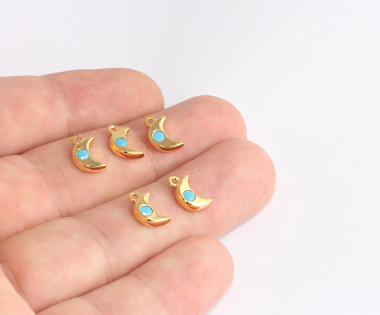 6,5x11mm 24k Shiny Gold Moon Charms, Micro Pave Mini SLM622