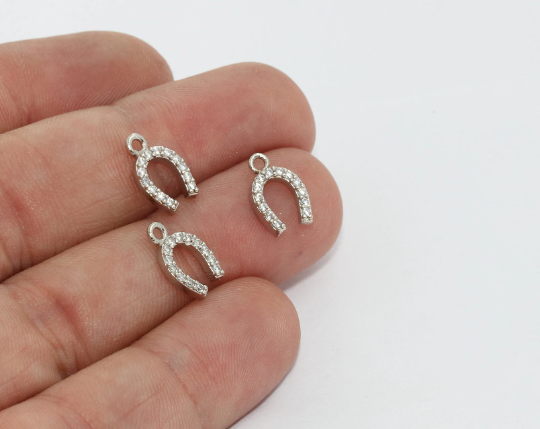 7x12mm Silver Plated Cz Horseshoe Charms, Horseshoe ZRCN626