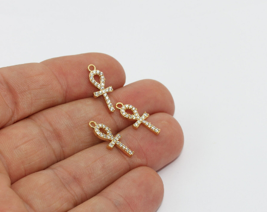 7x17mm 24k Shiny Gold Ankh Charms, Ankh Necklace, ZRCN385
