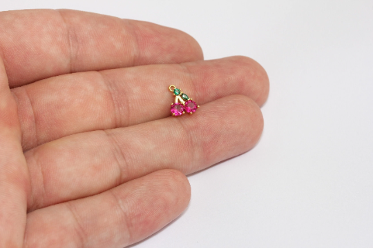 8,5x10mm 24k Shiny Gold Cherry Beads, CZ Cherry Charms, MLS1027