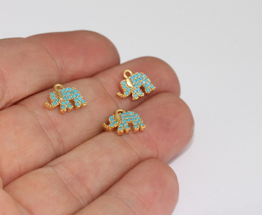 8x11mm 24k Shiny Gold Charms, Micro Pave Elephant , MLS113