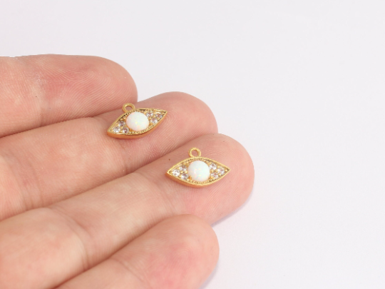 9x14mm 24k Shiny Gold Evil Eye Charm, Micro Pave Evil Eye XP230