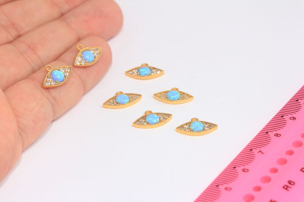 C9x14mm 24k Shiny Gold Evil Eye Charm, Micro Pave Evil Eye, SLM915