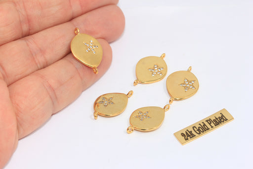 14x16mm 24k Shiny Gold Drop Charms, Micro Pave CZ Star Charms, MLS10