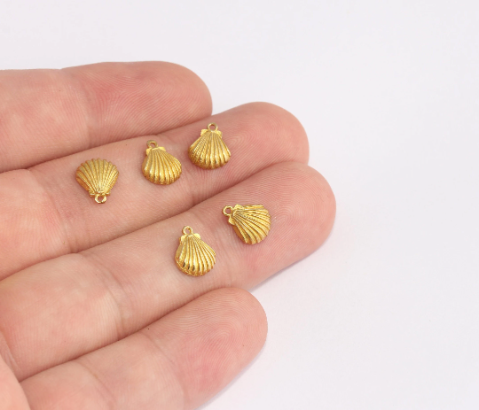 8x10mm Raw Brass Sea Shell Charms, Tiny Sea Shell Charms, SLM445